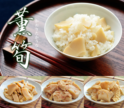 京たけのこギフトセット「薫筍 - かおりたかうな」は、お手軽に京たけのこご飯が炊ける人気の筍ご飯の素と、筍つくだ煮をお詰め合わせした、京たけのこを存分にご堪能いただける香月庵自慢の「たけのこづくし」ギフトです。