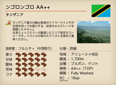 厳選したエリア指定のコーヒーです。バランスの取れたテイストを是非ご賞味ください。